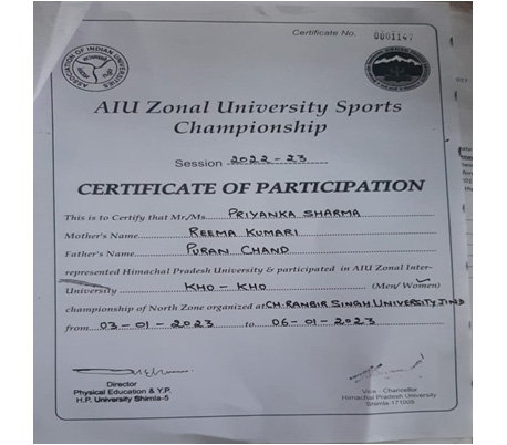 The athletics tournament was held at G.D.C. Hamirpur from 4th to 6th October 2018. 6 players participated in this tournament. Both boys and girls participated in this tournament.